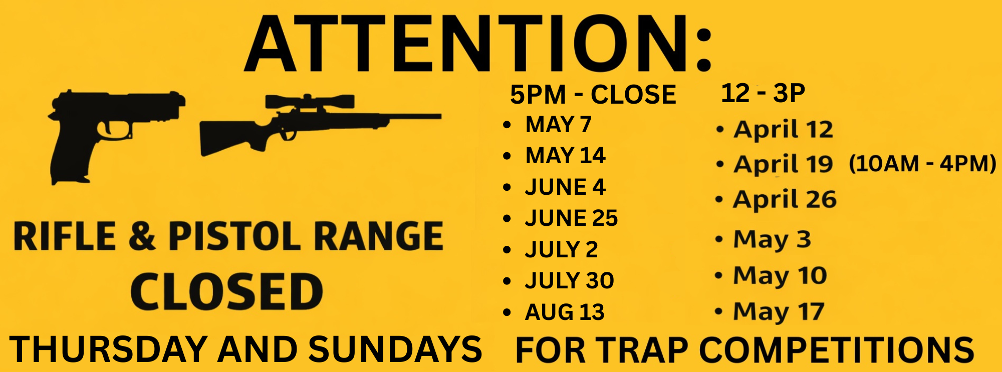With the arrival of warmer weather, we’re excited to kick off several upgrades and projects around the club grounds. A new gate has been installed at the pistol/rifle range, allowing us to close it off as needed for maintenance or special events. We’ve also received final approval for the renovation of the last trap field, which has now been scheduled. Multiple building repairs are lined up, and we’re actively planning continued improvements to the long-range shooting area throughout the year. Additionally, a new shelter has been approved for the trap field to help accommodate more members and guests during events.