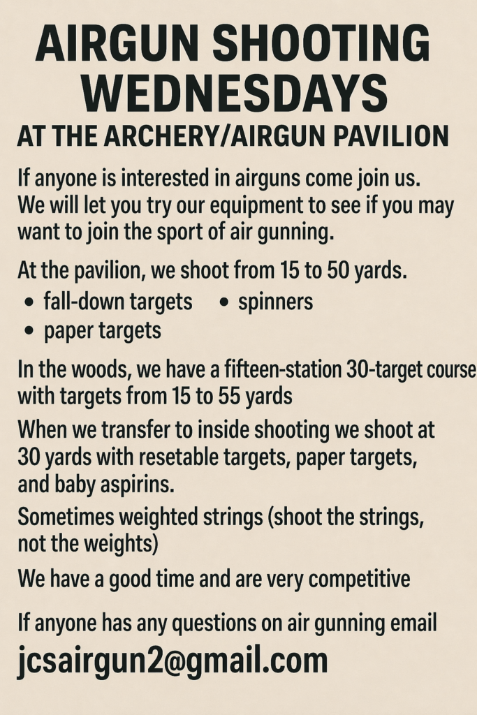 Despite the chilly weather, our Spring Indoor Flea Market was a great success—thank you to everyone who came out! We’ll see you again in the fall. Our spring cleanup also had a strong turnout, and we were able to knock out a ton of projects around the grounds. That said, there’s always more to do—if you’re interested in lending a hand, we welcome you to attend one of our monthly meetings, held on the third Wednesday of each month at 7 PM. We’re also excited to share that the new trap pavilion is up and ready to use—providing shade and shelter rain or shine. Several more projects are in progress, and we’re looking forward to completing them throughout the year. Thank you for your continued support!